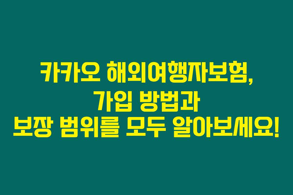 카카오 해외여행자보험, 가입 방법과 보장 범위를 모두 알아보세요!