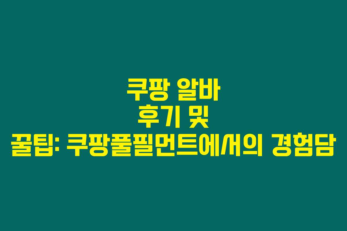 쿠팡 알바는 여러모로 매력이 있죠? 이 글을 통해 쿠팡 알바에 대한 여러 정보와 꿀팁이 도움이 되길 바라요! 여러분 모두 알바 잘 하시고, 좋은 경험 쌓으세요.