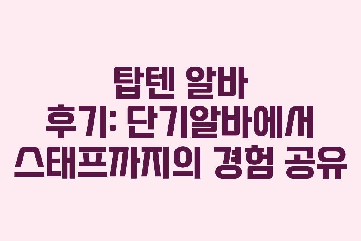 탑텐에서의 아르바이트 경험은 많은 분들에게 궁금증을 불러일으키는 주제입니다. 특히 단기 알바와 스태프 자리에서의 느낌, 일하는 환경, 그리고 급여에 관한 정보는 알바를 고려하는 이들에게 유용할 것입니다. 이 글에서는 탑텐 알바의 여러 후기들을 종합하여 이곳에서의 일상과 경험을 상세히 소개하겠습니다.