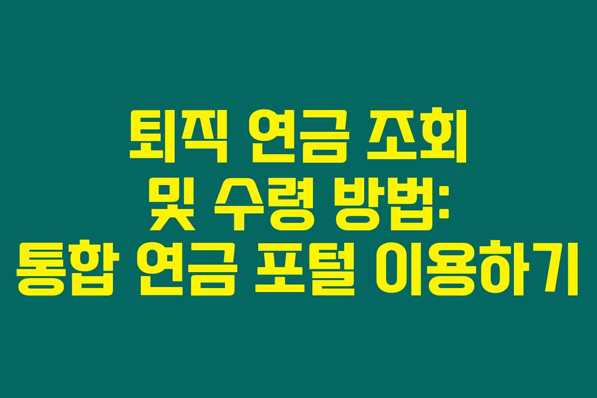 퇴직 연금 조회 및 수령 방법: 통합 연금 포털 이용하기