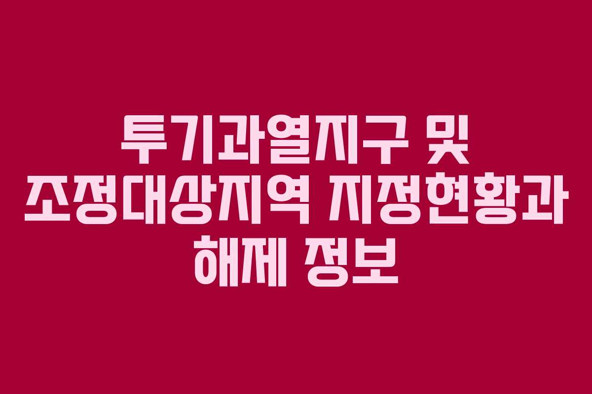 최근 국토교통부에서 발표한 주거정책 심의위원회의 결과에 따르면, 투기과열지구와 조정대상지역의 지정현황이 변경되었습니다. 이는 주택 시장의 안정화를 위한 조치로, 특정 지역의 주택가격 상승 폭이 낮고 미분양이 증가하는 지역이 해제되었습니다.