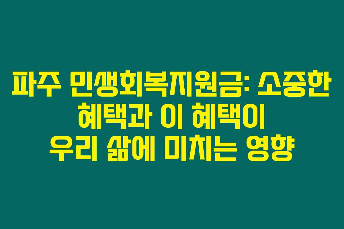 끝으로, 파주 민생회복지원금은 경제적으로 어려운 상황에 처한 주민들에게 중요한 역할을 하고 있다는 점에서 무척 값진 제도가 아닐까 생각합니다. 필요한 분들은 꼭 신청해보시고, 혜택을 누리시길 바랍니다.