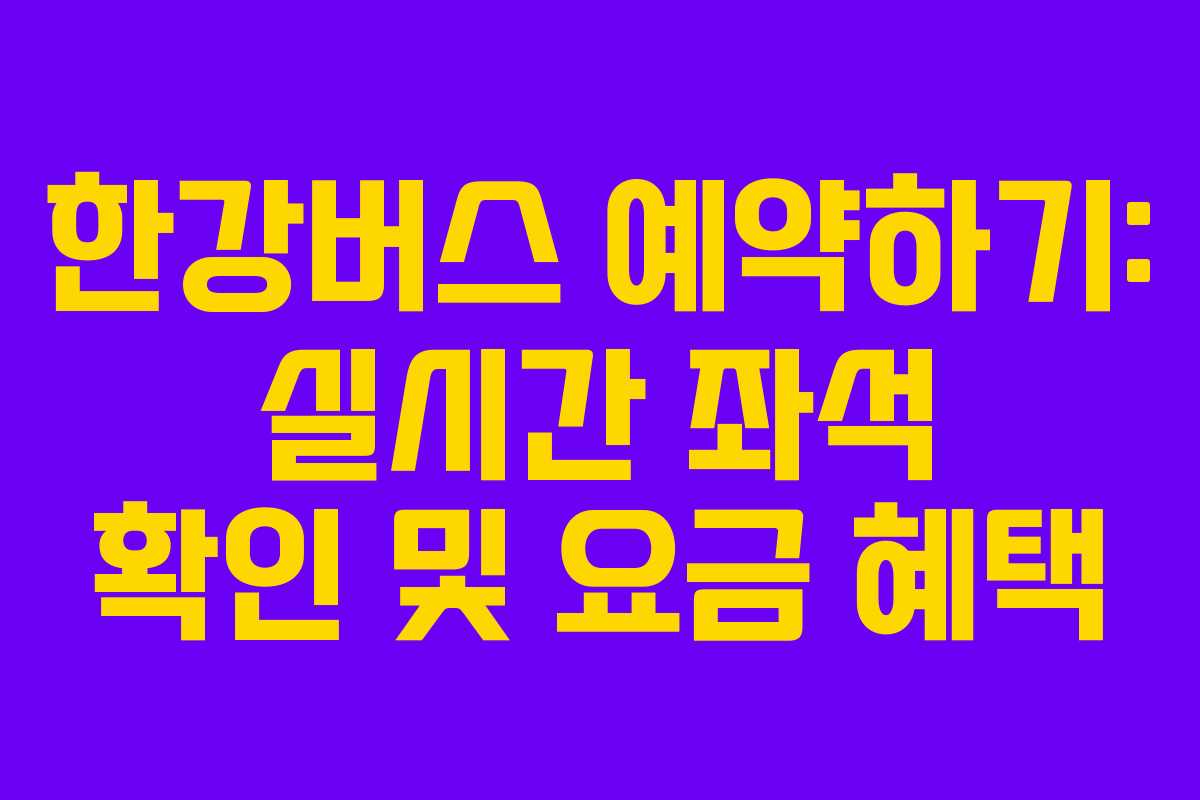 한강버스 예약하기는 많은 사람들이 이용하는 교통수단으로, 실시간 좌석 확인 및 요금 혜택을 통해 효율적인 예약을 도와줍니다. 이 글에서는 예약 과정과 요금 혜택을 상세히 안내하여 여러분이 편리하게 예약할 수 있도록 도와드립니다.