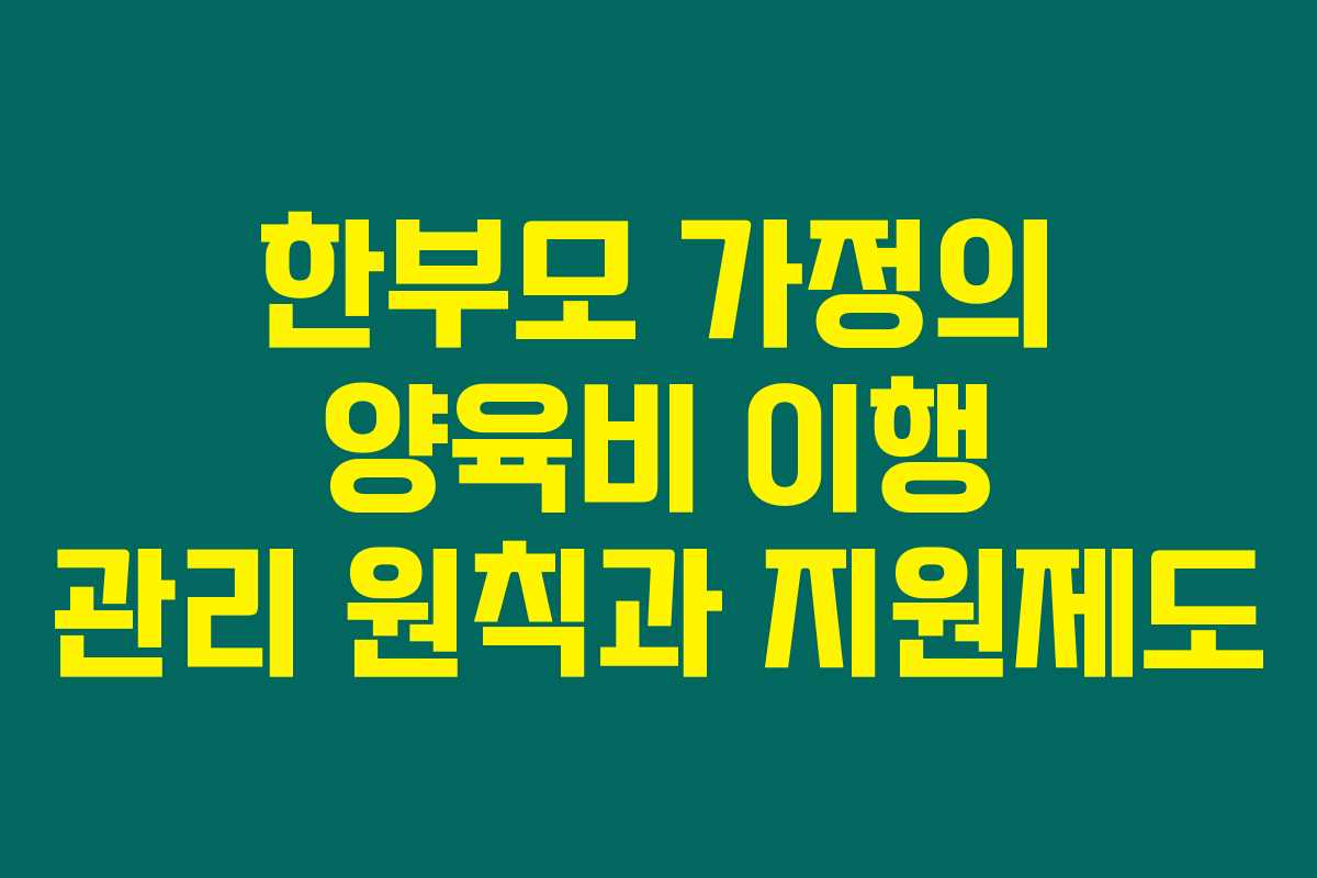 한부모 가정에서의 양육비 문제는 심각한 사회적 이슈로 떠오르고 있습니다. 많은 부모가 필수적인 지원을 받지 못하면서 생계를위협받고 있는데요, 아래를 읽어보시면 한부모 가정의 양육비 이행에 대한 관리 원칙과 지원 제도를 통해 이 문제를 어떻게 해결할 수 있는지에 대해 알아볼 수 있습니다.
