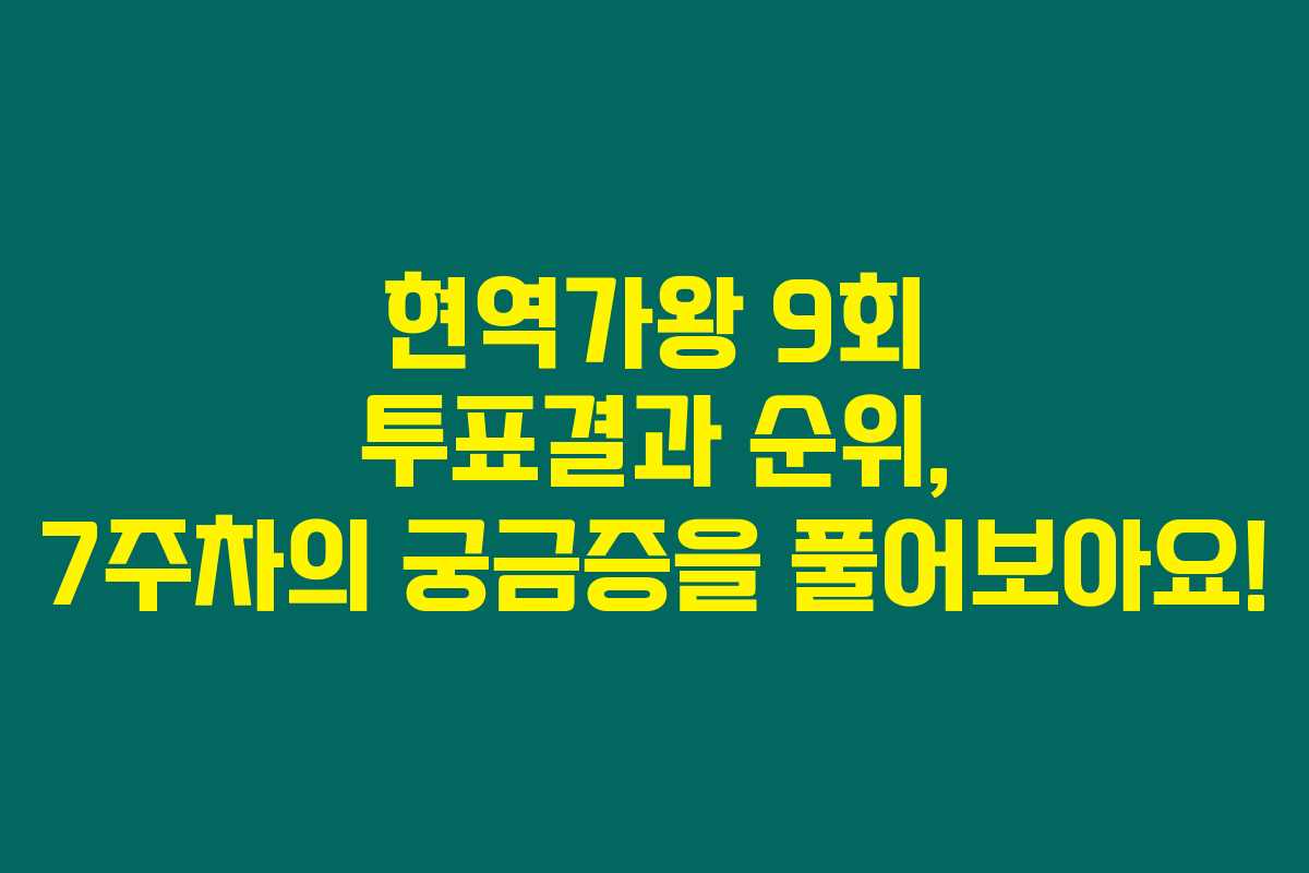 이렇게 현역가왕 9회 7주차 결과를 살펴봤어요. 앞으로의 변화가 기대되는 현역가왕! 여러분도 함께 지켜보며 응원하시길 바랄게요. 다음 방송에서 누가 또 순위에 들어갈지 기대하면서!