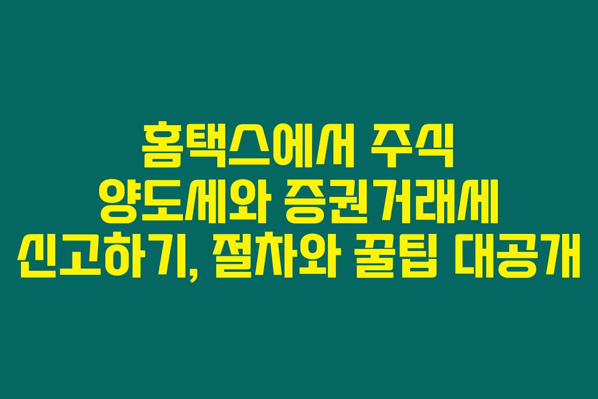 주식 양도세와 증권거래세 신고는 복잡하게 느껴질 수 있죠. 만약 주식 투자자가이라면 이러한 세금 신고에 대해 정확히 이해하고 있는 것이 매우 중요해요. 주식 양도세 신고를 통해 불필요한 세금을 줄이고 최고의 세금 혜택을 누려보세요. 아래를 읽어보시면 홈택스에서 주식 양도세와 증권거래세를 신고하는 방법을 쉽고 간단히 정리해 드릴게요.