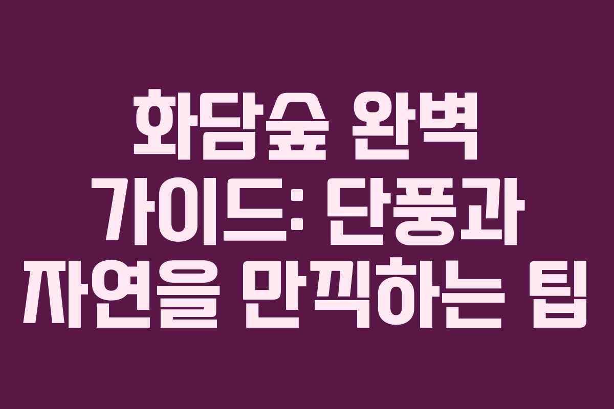 가을의 아름다움이 만개하는 화담숲에서 멋진 단풍을 즐기고 싶으신가요? 이 글에서는 화담숲 방문 시 유용한 정보를 정리했습니다. 예약부터 주차, 모노레일 이용방법까지 한눈에 확인하세요.
