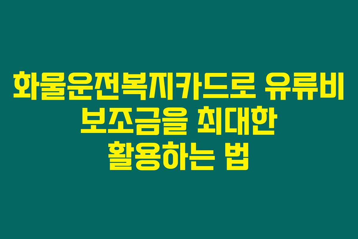 유류비 보조금과 화물운전복지카드는 화물운송업체가 경쟁력을 갖추는 데 필수적인 요소입니다. 이를 통해 운송료를 줄이고, 더 많은 고객에게 가성비 높은 서비스를 제공할 수 있습니다.