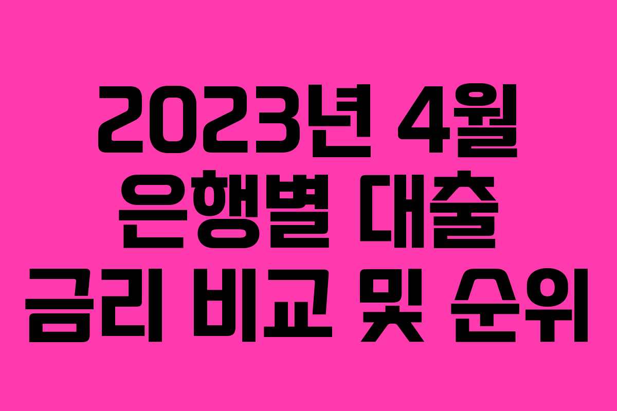 2023년 4월 은행별 대출 금리 비교 및 순위