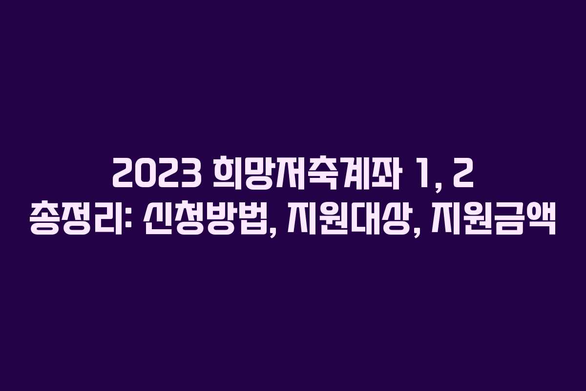 2023년 희망저축계좌 1과 2는 자산형성을 지원하기 위한 정부의 중요한 사업입니다. 이 글에서는 신청방법, 지원대상, 지원금액에 대해 자세히 설명드리겠습니다.