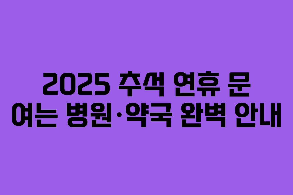 추석 연휴는 가족과 함께하는 소중한 시간이지만, 예기치 않은 건강 문제가 발생할 수 있습니다. 이에 따라 2025년 추석 연휴 동안 운영되는 병원과 약국에 대한 정보를 정리하였습니다.