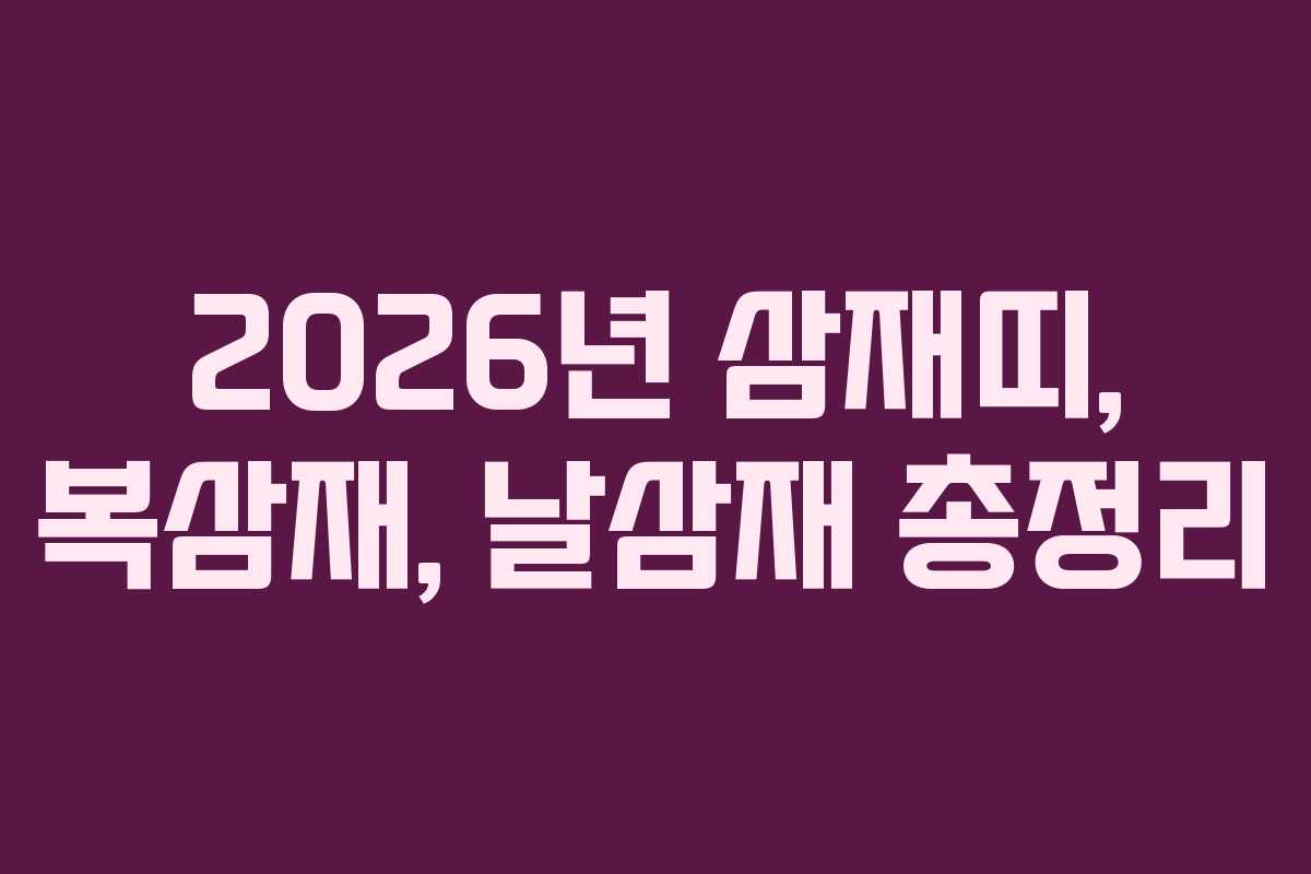 2026년 병오년, 즉 붉은 말의 해가 다가오면서 삼재에 대한 관심이 높아지고 있습니다. 삼재는 12년 주기로 찾아오는 3년간의 불운한 시기로, 이에 대한 이해와 준비가 중요합니다. 이번 글에서는 2026년의 삼재띠와 복삼재, 날삼재에 대해 자세히 알아보겠습니다.