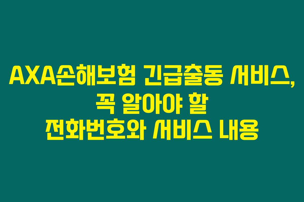 자동차보험을 가입하려고 고민하는 분들이라면 AXA손해보험의 긴급출동 서비스에 대해 궁금하실 거예요. 사고는 아무 때나 발생할 수 있죠. 뭔가 문제 생기면 정말 난감하잖아요? 그래서 AXA손해보험의 긴급출동 서비스는 꼭 알아두셔야 해요. 특히 자동차보험 가입자에게는 필수적인 내용입니다. 아래를 읽어보시면 AXA손해보험의 긴급출동 서비스와 고객센터 전화번호에 대해 자세히 공유할게요.