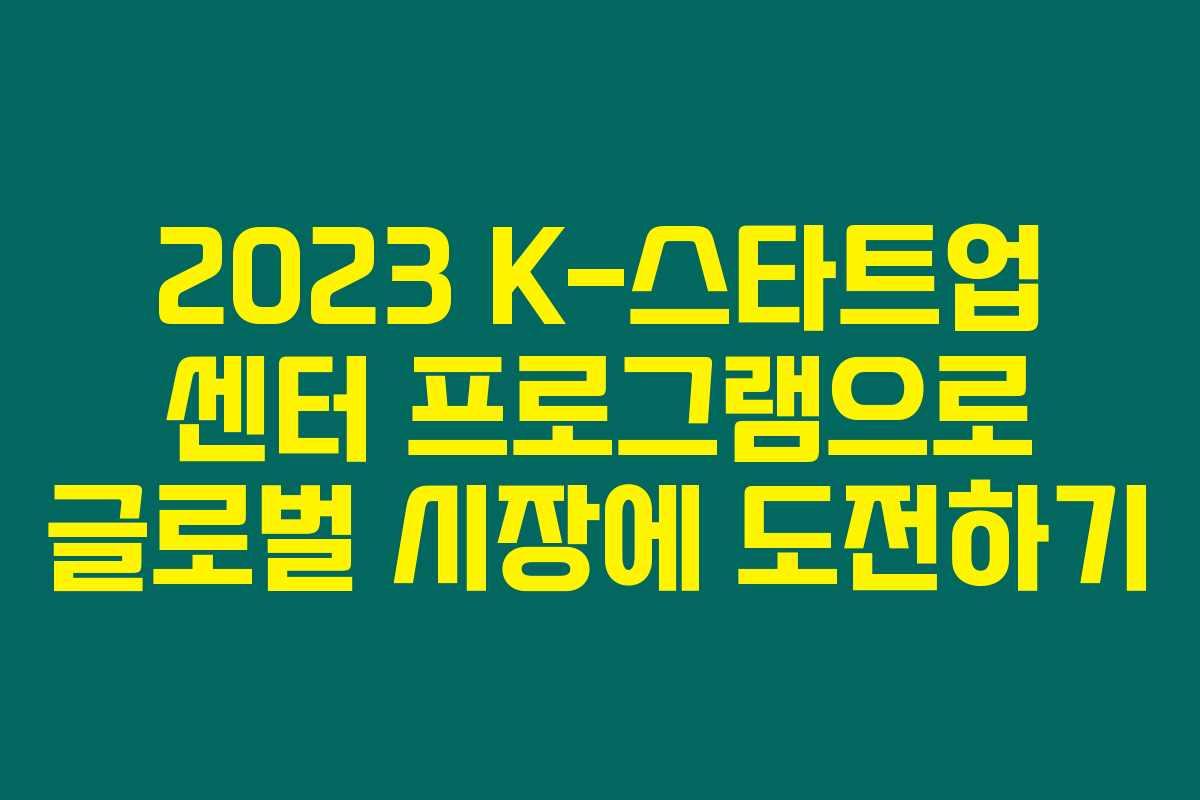 제가 직접 경험해본 결과로는, 2023년 K-스타트업 센터 프로그램은 많은 창업기업들에게 좋은 기회를 제공하는 플랫폼입니다. 해외 시장에 진출하고 싶은 창업자에게 꼭 필요한 정보와 지원을 받을 수 있는 플랫폼이지요. 아래를 읽어보시면 이 프로그램의 신청 요건, 지원 내용, 그리고 신청 방법에 대한 유용한 정보를 확인할 수 있습니다.