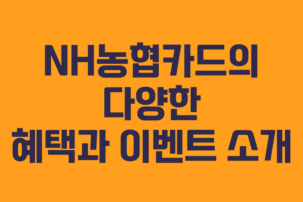 NH농협카드는 다양한 혜택과 이벤트를 통해 고객들에게 보다 유용한 서비스를 제공하고 있습니다. 이 글에서는 NH농협카드의 주요 이벤트 및 혜택을 자세히 소개하겠습니다.