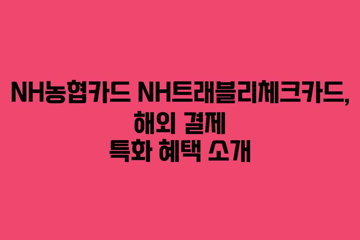 NH농협카드에서 새롭게 출시한 ‘NH트래블리체크카드’는 해외 결제에 최적화된 다양한 혜택을 제공합니다. 이 카드의 주요 특징과 신청 방법을 자세히 알아보겠습니다.