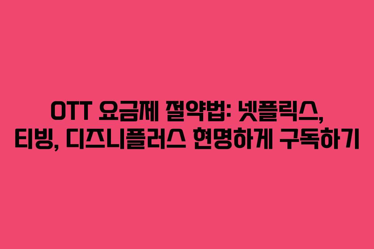 OTT 요금제 절약법: 넷플릭스, 티빙, 디즈니플러스 현명하게 구독하기