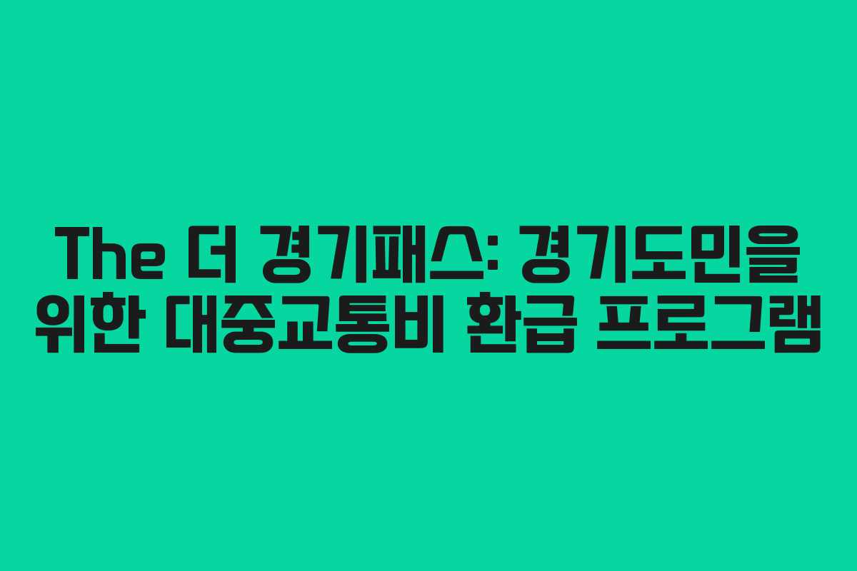 ‘The 더 경기패스’는 경기도민을 대상으로 하는 대중교통비 무제한 환급 프로그램입니다. 이는 국토교통부의 K-패스를 기반으로 하며, 경기도민에게 추가적인 혜택을 제공합니다. 2024년 5월 1일부터 K-패스의 홈페이지나 앱을 통해 가입할 수 있습니다.
